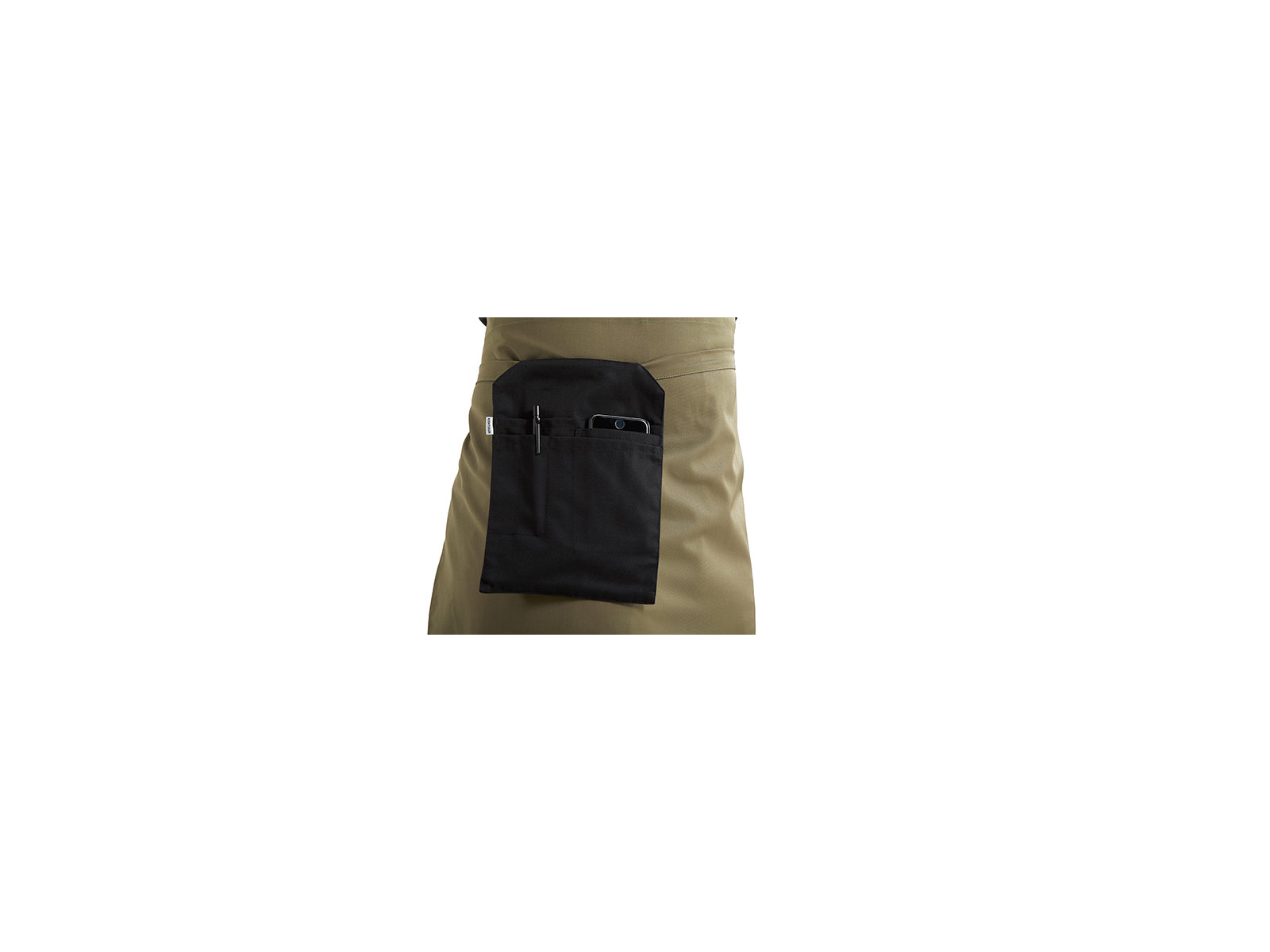Tjenerpungen kommer i one size, der passer til de fleste forklæder. Den vejer kun 65 gram, hvilket gør den let at bære gennem hele arbejdsdagen. Materialet i 2/1 twill-væving sikrer en god balance mellem holdbarhed og fleksibilitet, mens den sorte farve skjuler mindre pletter og slid, som uundgåeligt opstår i et travlt serveringsmiljø.