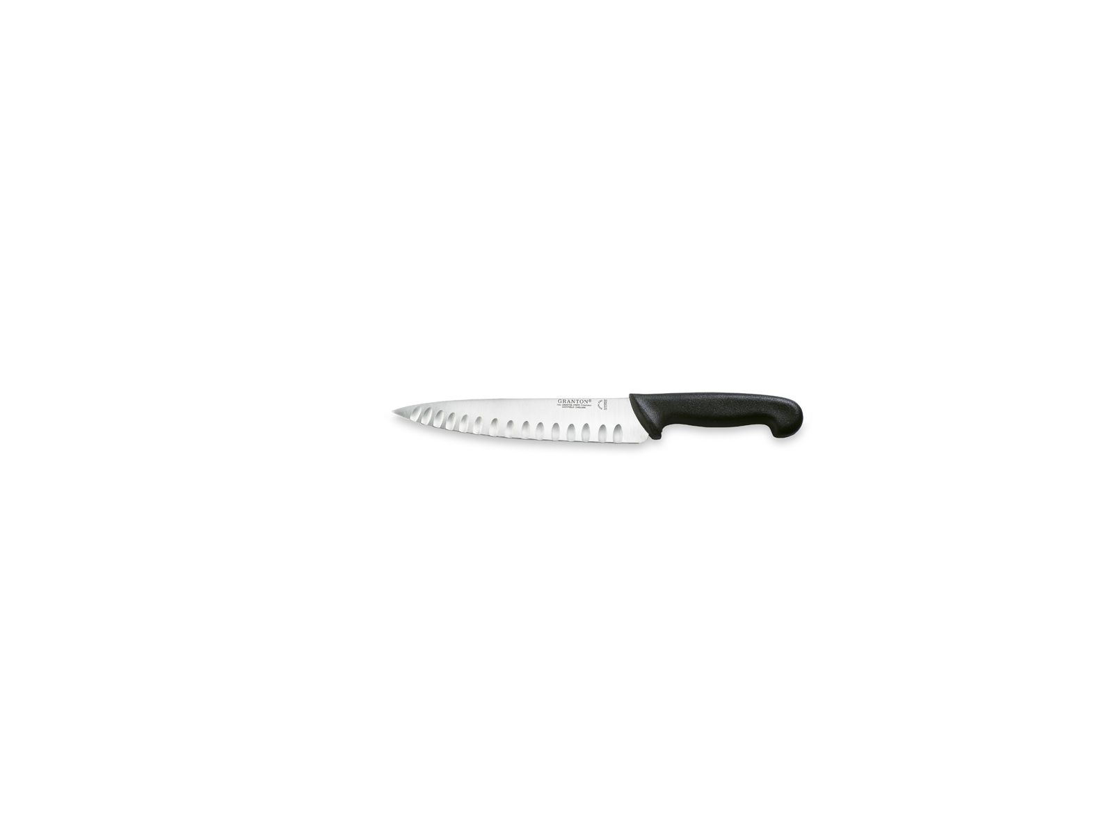 Denne 21 cm Granton trancherkniv med sort plasthåndtag er specialdesignet til at skære perfekte, tynde skiver af kød, fisk, grøntsager og brød. Det rustfrie Sheffield-stål kombineret med de innovative luftskær reducerer friktionen markant, så maden ikke klæber til bladet under skæringen. Ideel til både hverdagsbrug og når gæsterne skal imponeres med perfekt udskåret mad.