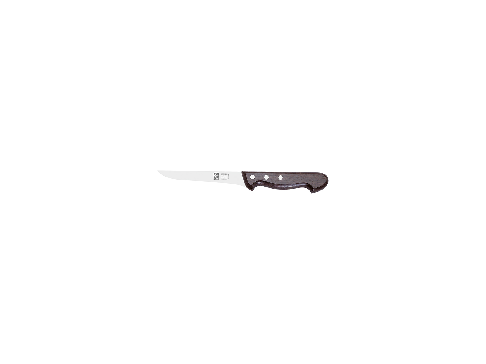 Denne Icel Tradicao udbenerkniv med 13 cm klinge og elegant rosentræsskæfte er designet til professionelt arbejde med kødstykker. Den buede klinge i rustfrit stål med en hårdhed på 55 HRC muliggør præcis skæring rundt om knogler og fjernelse af fedt uden at kompromittere kødets struktur. Kniven er fremstillet i pladestål, der sikrer god balance og holdbarhed.