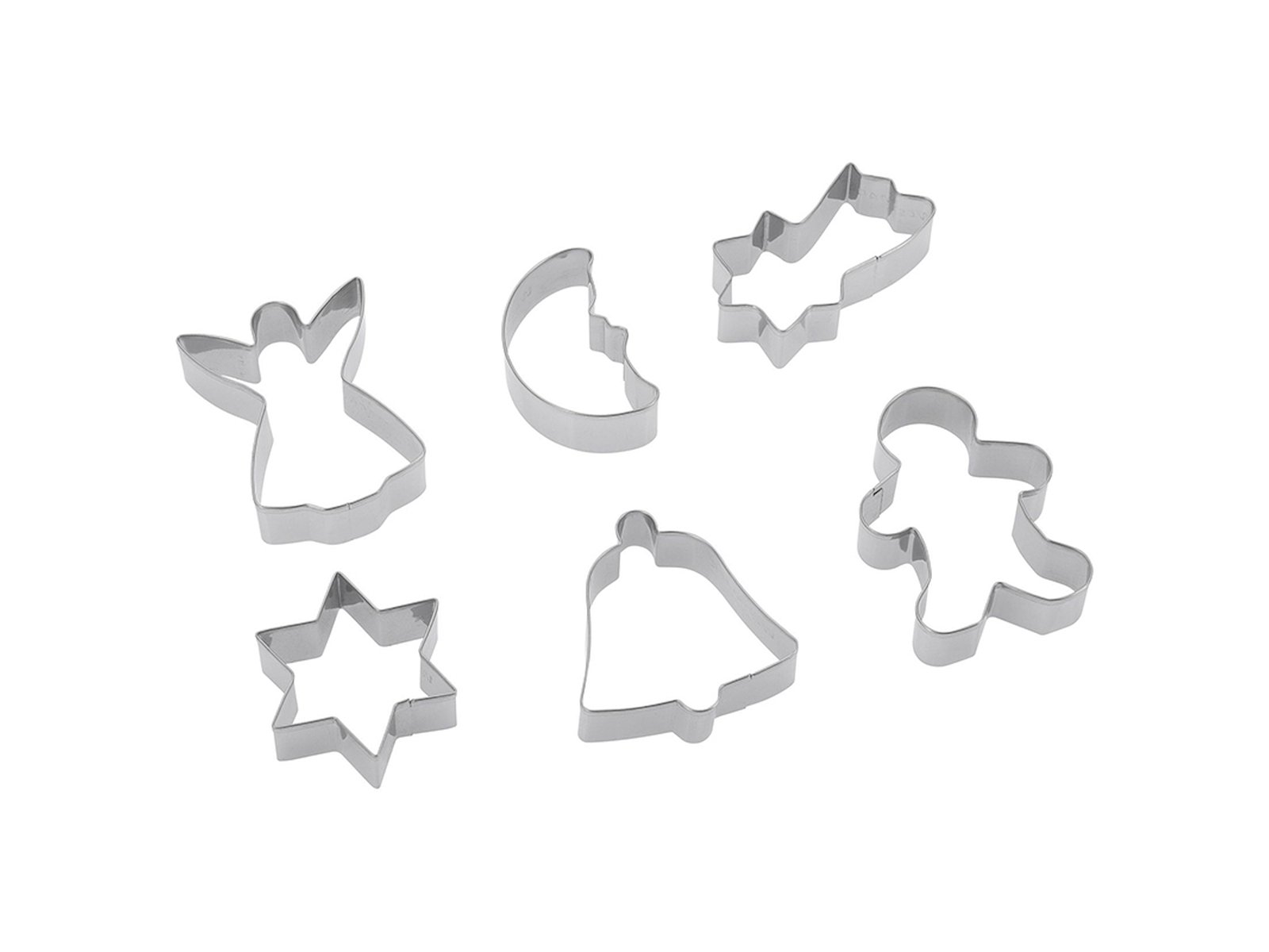 Dette udstikkersæt fra Westmark indeholder seks forskellige julemotiver i rustfrit stål med skarpe skærekanter og sikre, afrundede toppe. Sættet giver dig alt, hvad du skal bruge til at skabe smukke julesmåkager med præcise former og klare detaljer. Du får en engel, peberkagemand, stjerne, måne, klokke og stjerneskud i én samlet pakke.