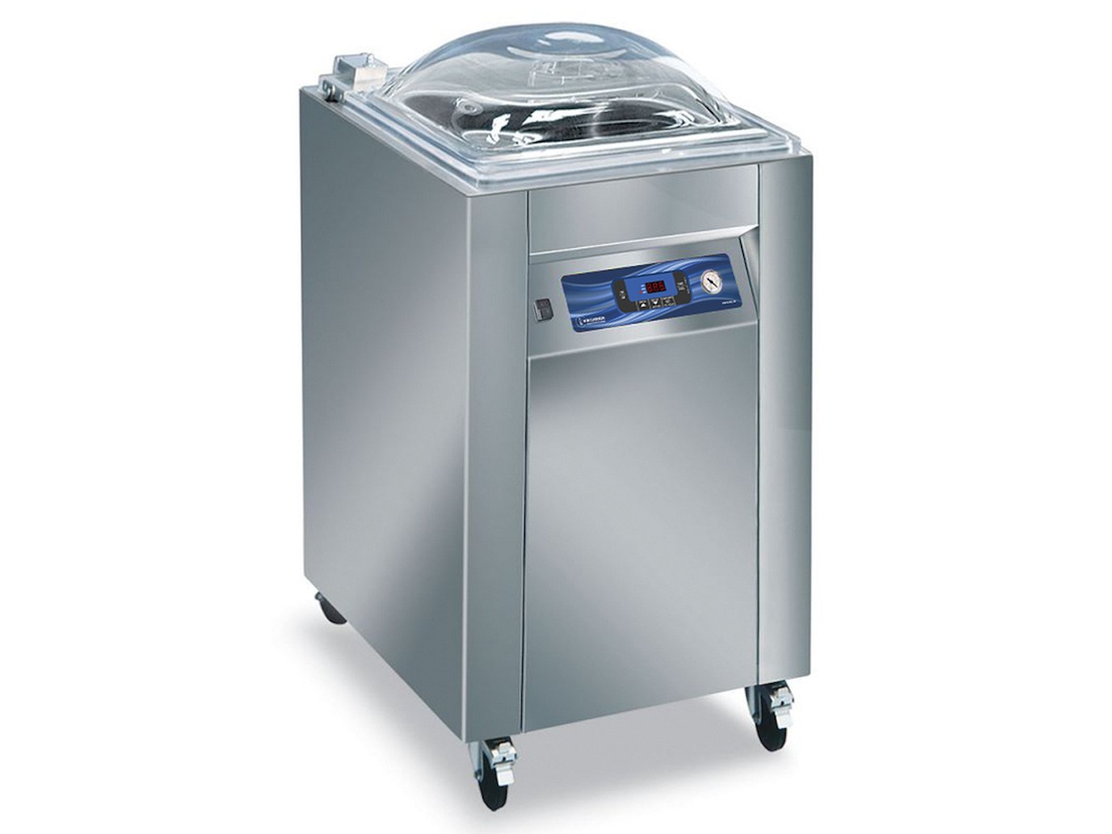 Vakuumpakkeren Eco 45L Digit er en kraftfuld gulvmodel i rustfrit stål designet til professionel fødevareemballering. Med sin robuste konstruktion og store vakuumkammer på 460x500x220mm sikrer den effektiv lufttæt forsegling af både faste og flydende fødevarer, hvilket forlænger holdbarhed og bevarer friskhed.