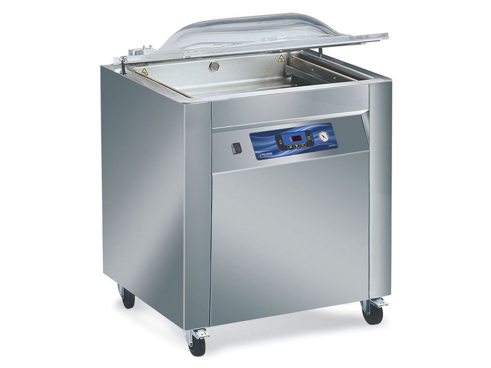 Fremstillet i slidstærkt rustfrit stål er denne vakuumpakker bygget til intensiv daglig brug i professionelle miljøer. De integrerede hjul gør det nemt at flytte den 160 kg tunge maskine efter behov, hvilket giver fleksibilitet i køkkenet eller produktionsområdet. Den gennemtænkte konstruktion med målene 840 x 710 x 1050 mm kombinerer stor kapacitet med et relativt kompakt fodaftryk, så den passer ind selv i travle produktionsmiljøer med begrænset plads.