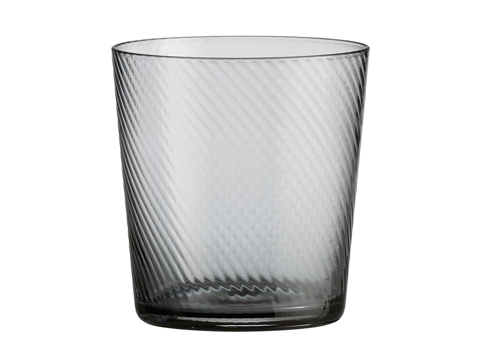 - Et håndlavet, mundblæst glas med unikt swirl-mønster