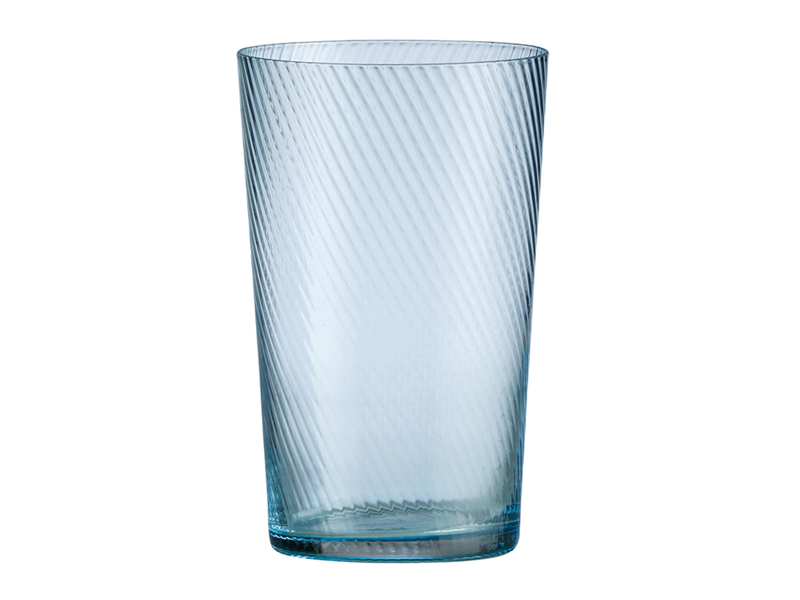RAW Unique tumbler i lys blå med det karakteristiske swirl-mønster er et mundblæst vandglas på 45 cl, der forener funktionalitet med tidløst skandinavisk design. De tætte, tynde linjer snor sig elegant omkring glasset og skaber et organisk udtryk, der både er rustikt og sofistikeret. Hvert glas er håndlavet, hvilket giver det en unik karakter.