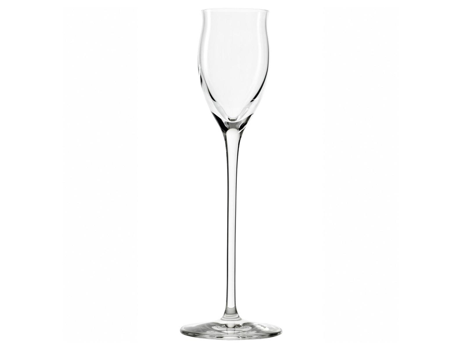 Dette specialdesignede glas fra Stölzles Quatrophil-serie er skabt specifikt til nydelse af grappa og andre fine spiritustyper. Med en rummelig kapacitet på 6,5 cl og en slank, elegant form fremhæver glasset drikkens aromaer og smag på bedste vis. Den lange, tynde stilk giver et sikkert greb og forhindrer uønsket opvarmning af indholdet.
