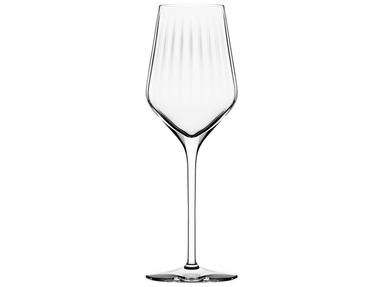 Stölzle Symphony hvidvinsglas på 40,5 cl forener elegant design med gennemtænkt funktionalitet. Glasset har en fin, vertikal struktur indvendigt, der fremhæver vinens aromaer og sikrer den fulde smagsudvikling. Med en højde på 245 mm og en diameter på 83 mm ligger dette glas perfekt i hånden.