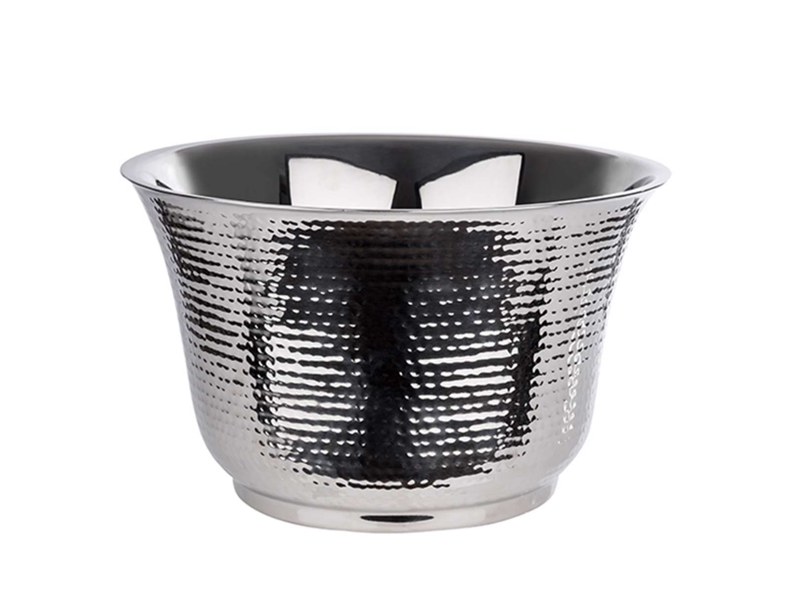 Champagnekøleren er fremstillet af rustfrit stål med en hammeret overflade, der giver et eksklusivt udtryk. Med en diameter på 33 cm, en højde på 20 cm og en kapacitet på 8 liter kan den rumme en flaske champagne eller vin omgivet af rigeligt med is. Den er opvaskemaskinesikker og vejer 2,7 kg, hvilket giver den en god stabilitet på serveringsbordet.
