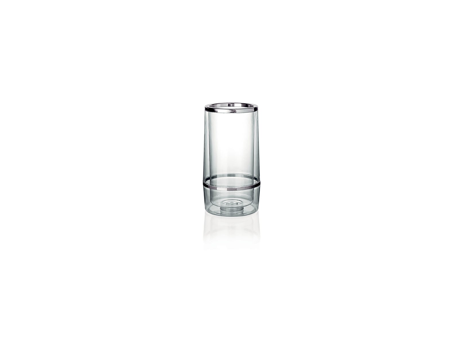 Denne stilfulde vinkøler fra WAS kombinerer klar acryl med en elegant stålkant for et moderne udtryk. Med en højde på 23 cm og diameter på 11,5 cm er den designet til at holde din vin ved den rette temperatur, mens den samtidig fungerer som et dekorativt element på bordet. Vinkølerens gennemsigtige materiale giver et let og luftigt udtryk.